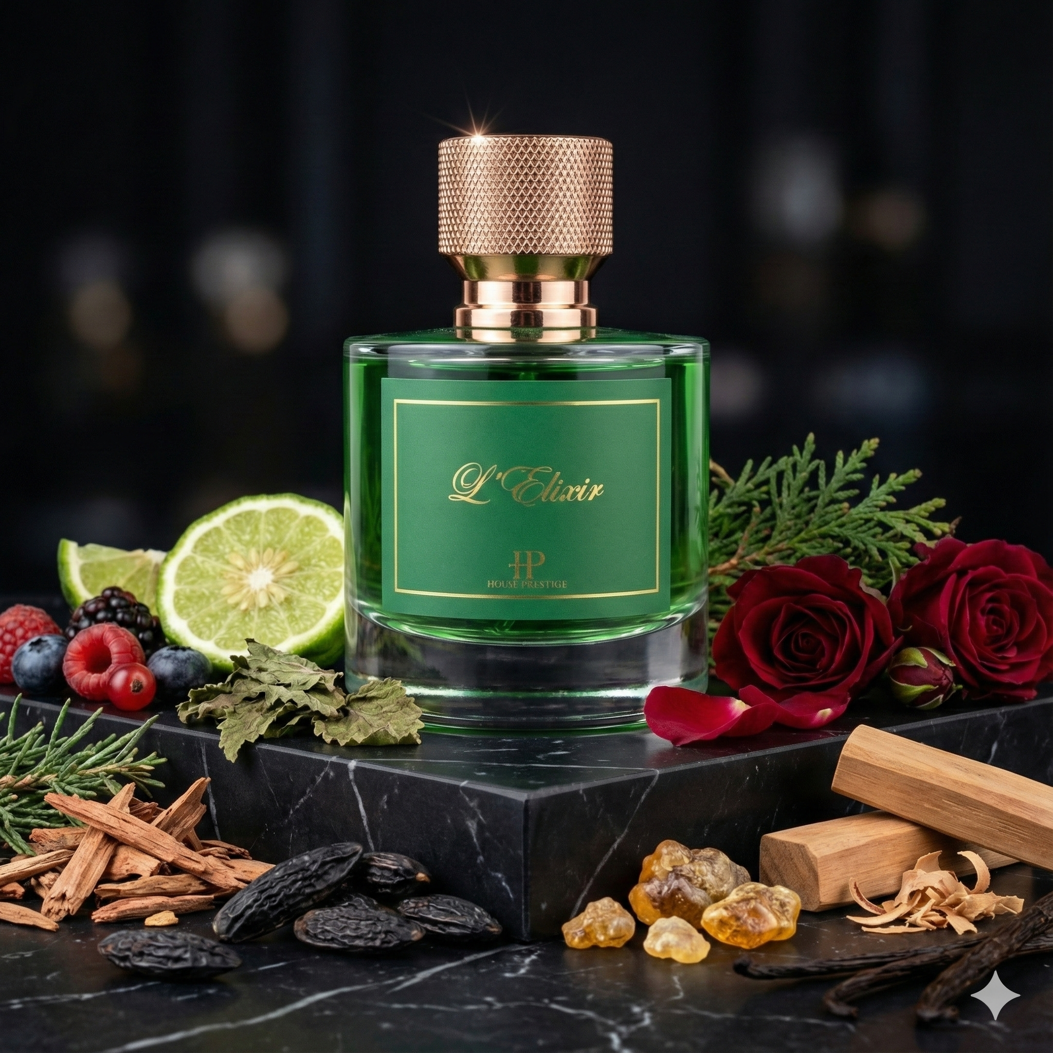 Cette création repose sur un clair-obscur fascinant et parfaitement maîtrisé. De plus, la rencontre entre des bois précieux sombres et une douceur poudrée crée une texture envoûtante sur la peau. Le cœur vibrant de patchouli et de fève tonka assure une présence sophistiquée. Porter L'Elixir, c'est choisir de laisser une trace indélébile et hypnotique partout où vous passez.