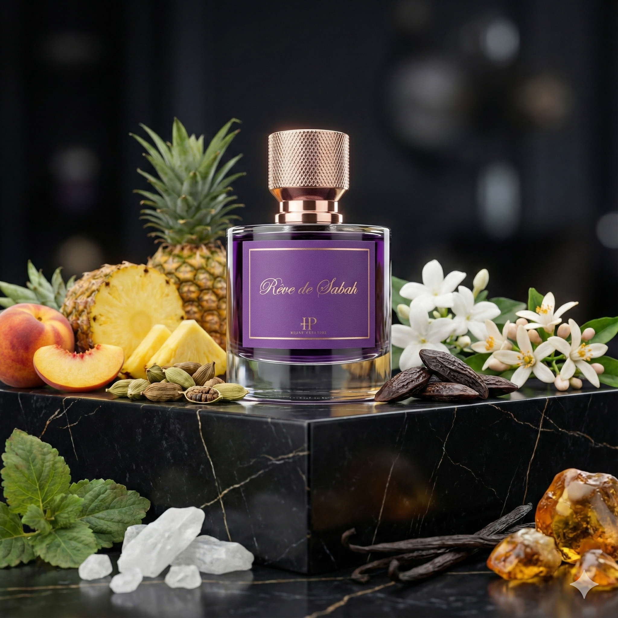 Cette création repose sur une harmonie fascinante entre gourmandise et sophistication florale. De plus, la rencontre entre des notes fruitées juteuses et un cœur floral blanc apporte une texture veloutée et féminine. C'est un parfum qui rayonne, conçu pour celles qui souhaitent briller. Rêve de Sabah laisse derrière lui un sillage doré et musqué, à la fois mystérieux et terriblement envoûtant.